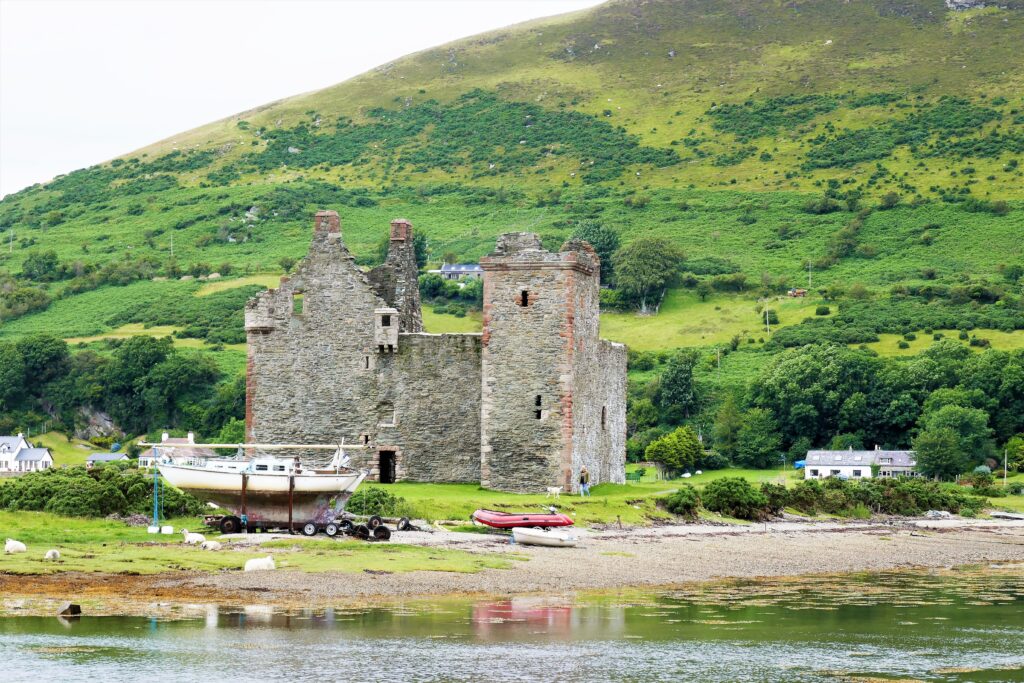Tobermory, met zijn rij felgekleurde huizen langs de haven, vormt het vriendelijke gezicht van het eiland. Van daaruit slingeren wegen en paden het binnenland in, langs bossen, watervallen en oude nederzettingen die herinneren aan een tijd waarin Mull veel dichter bevolkt was. Overal kom je sporen tegen van geschiedenis: een verlaten dorp, een ruïne op een heuvel, een oude steenmuur die nergens meer heen lijkt te gaan.