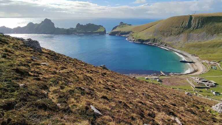 Tot 1930 leefde hier een kleine, hechte gemeenschap die volledig zelfvoorzienend was. Ze moesten naar het vasteland omdat er én een verpleegster moest zijn en de post regelmatig opgehaald moest worden volgens de wet. En dat werd te duur.. Door isolement, veranderende omstandigheden en zware leefomstandigheden stemden de laatste 36 bewoners in met evacuatie. De resten van hun stenen huisjes en opslaghutten (cleits) geven het eiland een bijna tijdloze, melancholische sfeer.