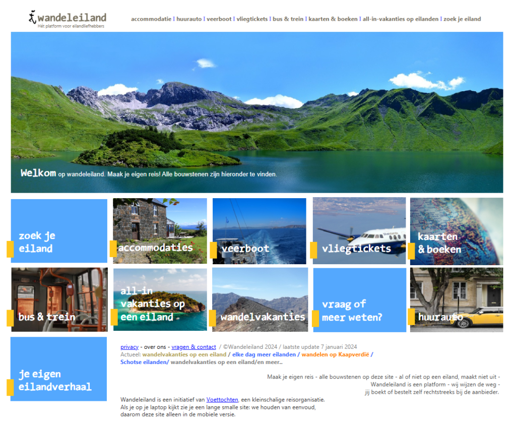 Om de zoveel tijd zie je het overal (misschien alleen niet bij het glazen colaflesje) nieuw, vernieuwd, nog beter enz. enz. We sluiten ons bij het rijtje aan en hebben ook wandeleiland vernieuwd. We hopen dat je snel de weg vindt, vernieuwd wandeleiland heeft een iets andere opzet en bevat héééél veel meer info.